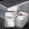 Own a Patriotic piece of America. Sculpted from .999 fine silver, these silver bars are a tangible testament to our nation’s heritage. Perfect for both novices and seasoned numismatists, they stand as radiant markers of America’s rich timeline. Display them, and let history speak.