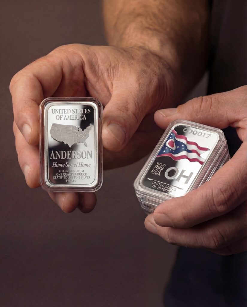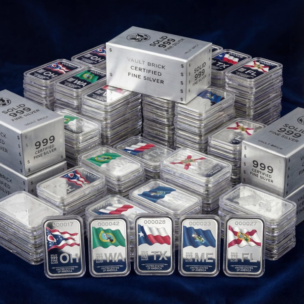Every State Flag Silver Bar is minted by First National Mint and Trust using certified solid .999 fine silver – the same purity standard trusted by government mints worldwide.